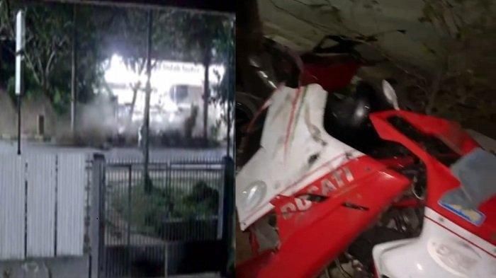 Terlihat penampakan motor Ducati hancur usai menabrak trotoar di Kendari.