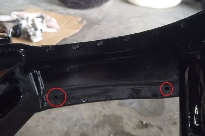 "Tapi masalahnya lubang ini posisinya tidak berada di titik paling bawah, akibatnya air bisa keluar tapi masih ada yang tertahan di dalam rangka," sambungnya.