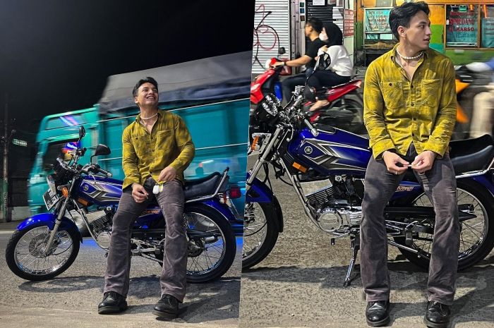 Jefri Nichol sendiri datang naik motor favoritnya, yaitu Yamaha RX-King warna biru.