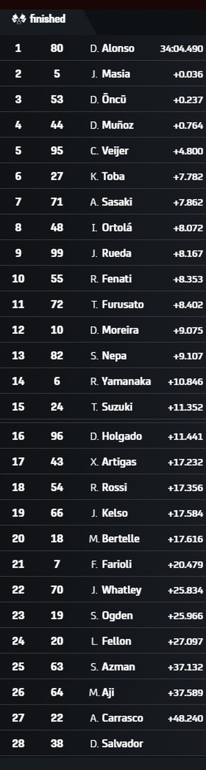 Disusul Jaume Masia podium dua, dan Deniz Oncu ketiga.