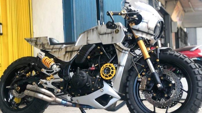 MOTOR Plus-online.com - Tambah ganteng tampilannya, modifikasi motor Yamaha R25 berubah menjadi cafe racer asal Pontianak, ini detil racikannya.