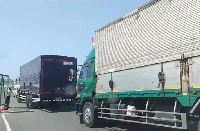 Dari Bali, perlengkapan balap MotoGP dibawa truk kontainre menuju Sirkuit Mandalika.
