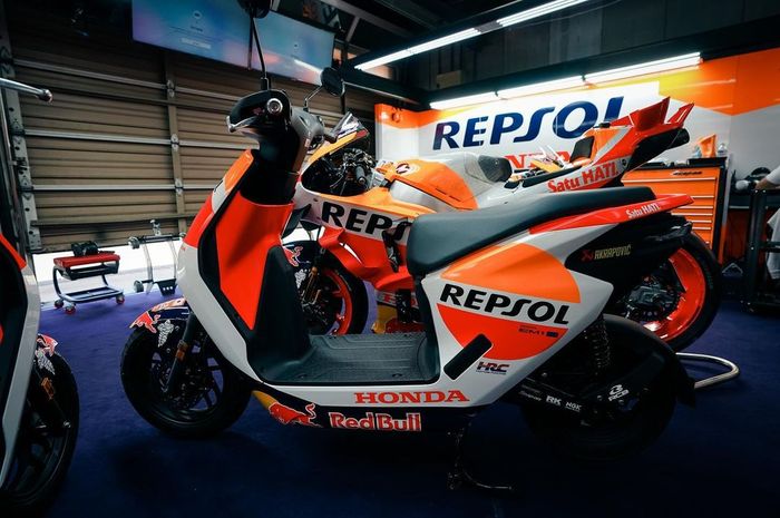 Untuk motor paddock Repsol Honda Team di MotoGP Jepang 2023 cukup spesial karena menggunakan motor listrik Honda EM1 E.