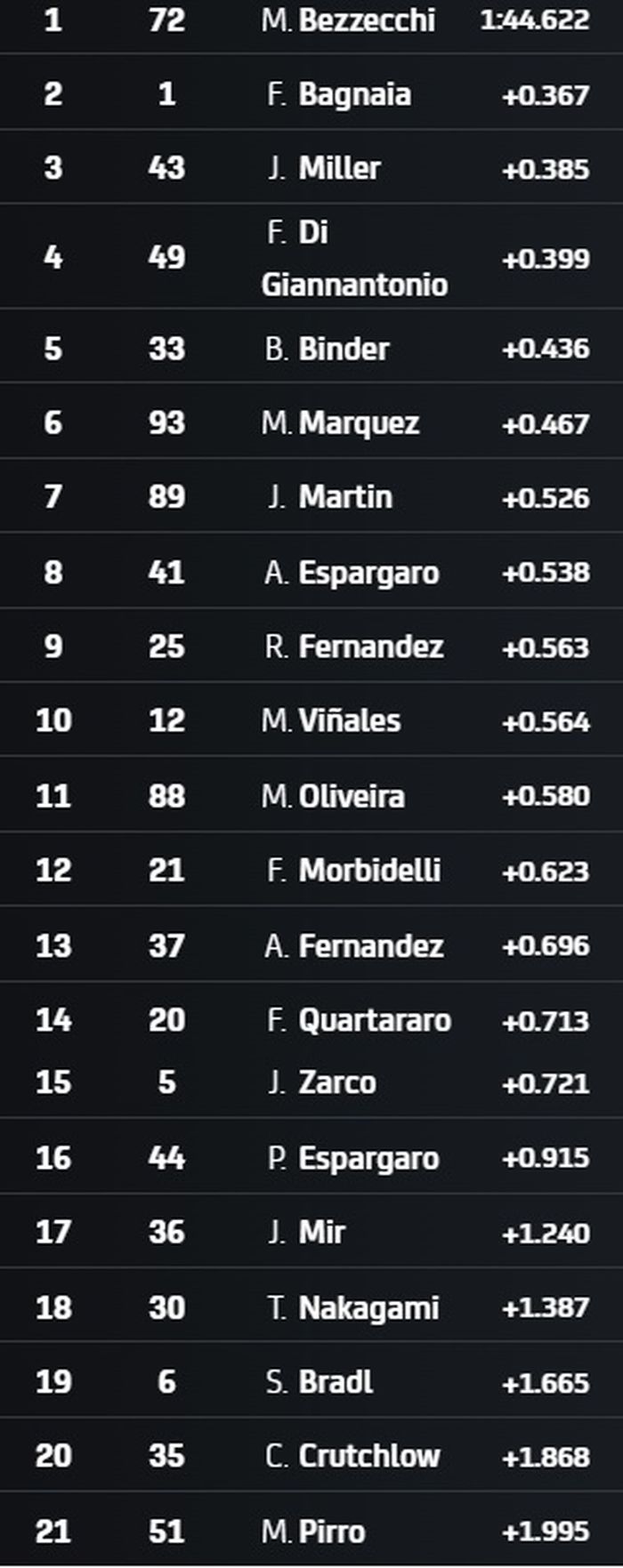 Francesco Bagnaia tercepat kedua dan Jack Miller naik ke peringkat ketiga.