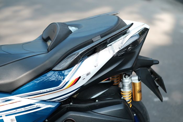 Di bagian tempat duduk, jok diganti dengan alas duduk XMAX Eropa agar lebih nyaman.