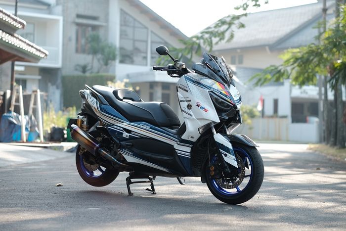 MOTOR Plus-online.com - Hasil modifikasi motor Yamaha XMAX dengan motif perpaduan helm mantan pembalap F1, mesin dan powernya bikin yang doyan ngebut full senyum.