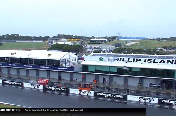 Namun, gara-gara cuaca buruk yang melanda di sekitar sirkuit yang berada di Phillip Island tersebut membuat balapan dibatalkan.