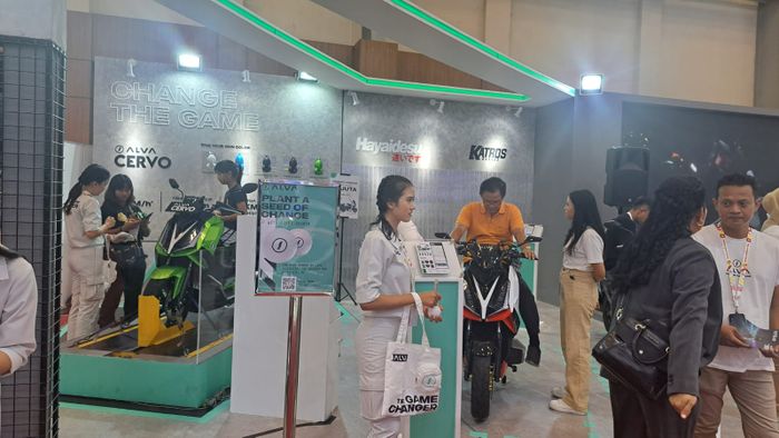 Motor listrik Alva One dan Alva Cervo hadir di booth Alva di event IMOS+
