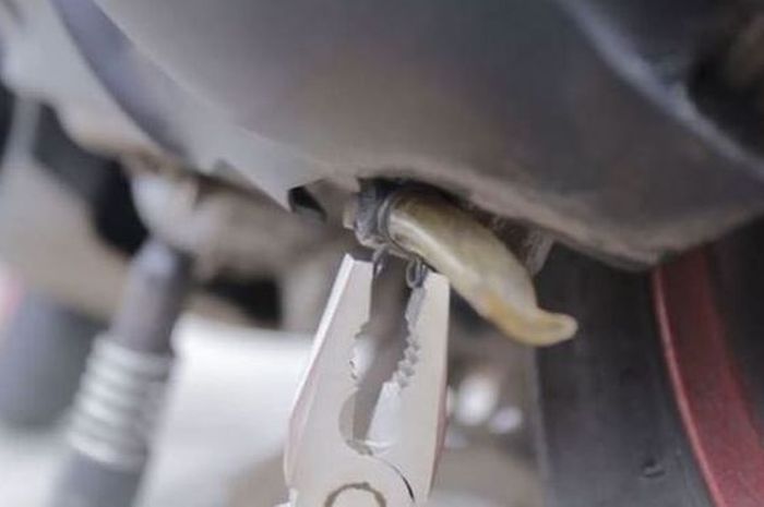Misalnya Honda All New BeAT, cara membuka lubang pembuangan ini bisa menggunakan tang universal.