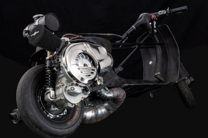Modifikasi motor Vespa drag bike itu diturunkan Jesco Schmidt di acara Glemseck 101, sebuah festival motor di Kota Leonberg, Jerman bulan September lalu.