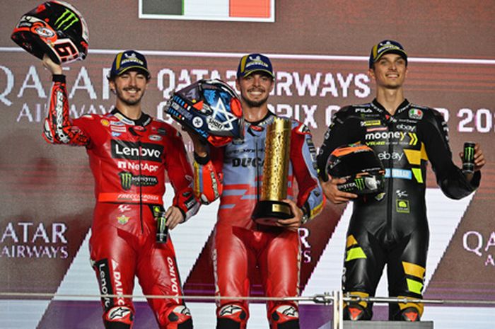 Pembalap Italia cetak sejarah menyapu bersih podium MotoGP Qatar 2023 sekaligus pertama podium dikuasai pembalap satu negara.