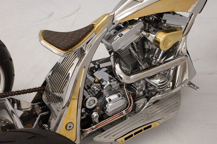 Joknya sendiri dibuat ornament, ada paduan aluminium, brass dan kulit dari tas LV, sesuai dengan konsep motor yang berseni tapi juga elegan.