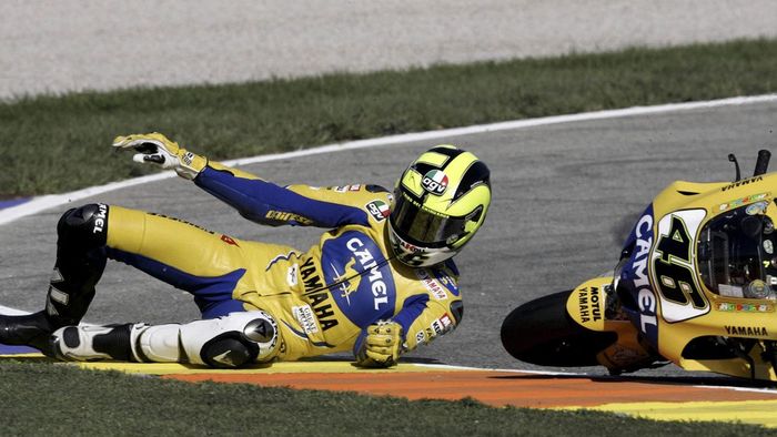 Valentino Rossi dua kali mengalami kejadian nahas di mana The Doctor julukannya kalah dalam pertarungan juara dunia tepat di putaran terakhir.