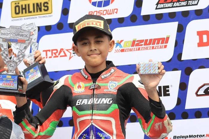 Dia adalah Putu Haga Winatha, pembalap berusia 12 tahun asal Badung, Bali.