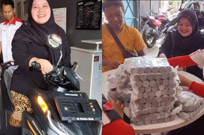 MOTOR Plus-online.com - Kisah unik dialami karyawan dealer di Tegal, mendapatkan konsumen yang membeli Honda Vario 125 pakai uang koin dan receh.