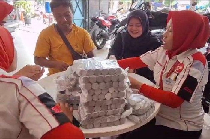 Tak sendirian, wanita yang akrab disapa Diah itu dibantu sang suami untuk membawa uang receh ke Diler Honda Naga Mas Kota Tegal, Jawa Tengah, Kamis (7/12/2023) kemarin.