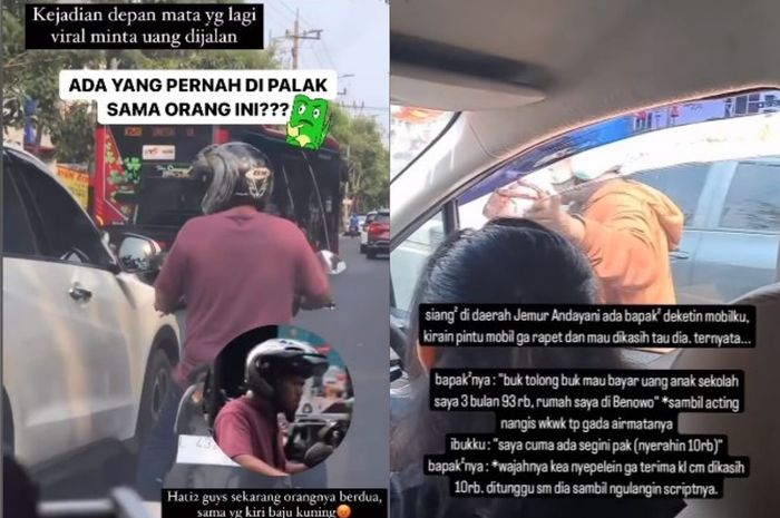 Saat beraksi, pemalak bermotor ini nekat mengetok-ngetok kaca mobil dan meminta uang.