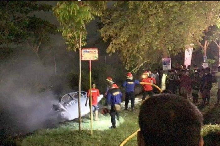 MOTOR Plus-online.com - Terjadi kecelakaan lalu lintas antara mobil Suzuki Ertiga dengan motor Honda Scoopy dan Honda Supra X.