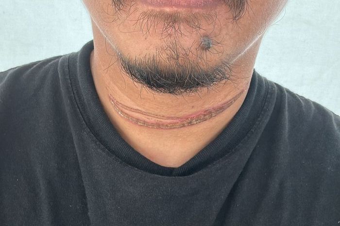 Imbasnya, lehernya pun terkena kabel fiber optik yang membuat leher Dwi terluka cukup parah.