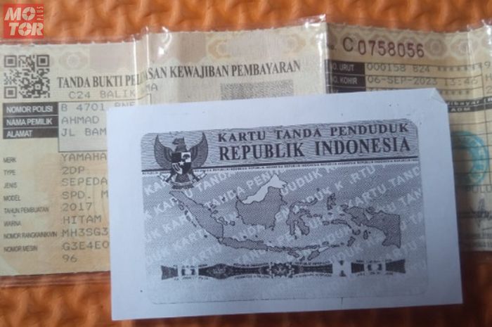 Selain fotokopi KTP pemilik motor juga wajib melampirkan fotokopi STNK dan BPKB.
