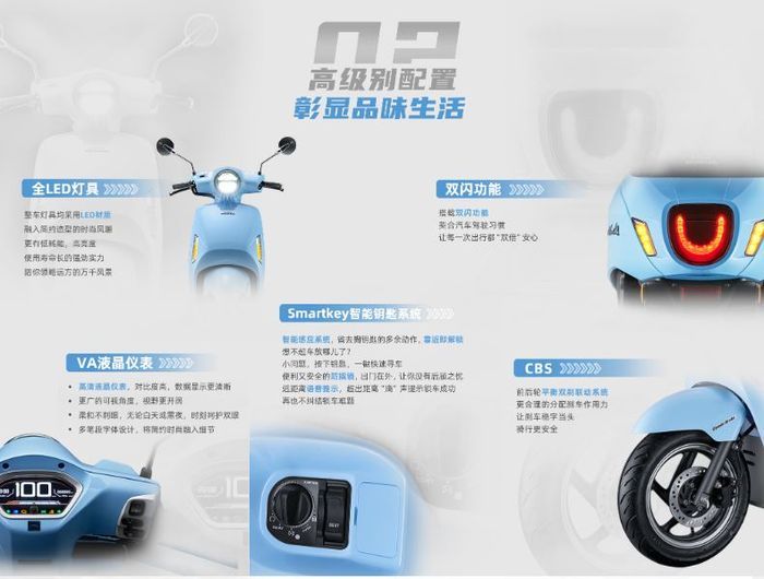 Bahkan bentuk stoplamp LED pun juga terkesan meniru kepunyaan Vespa Primavera atau Vespa Sprint.