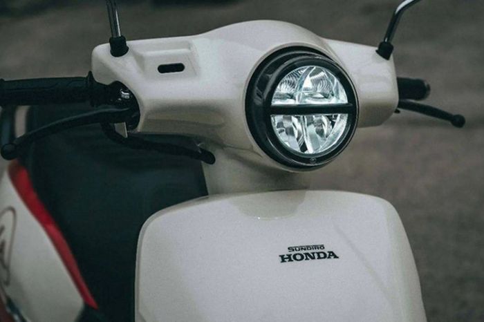 Punya headlamp LED bulat dengan bagian bodi depan yang lebar bikin teringat dengan Vespa.