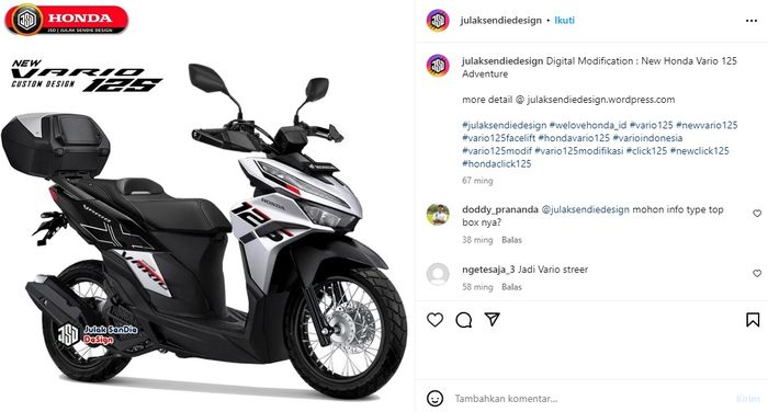 "Digital Modification : New Honda Vario 125 Adventure" demikian tulis keterangan di akun Instagram @julaksendiedesign.
