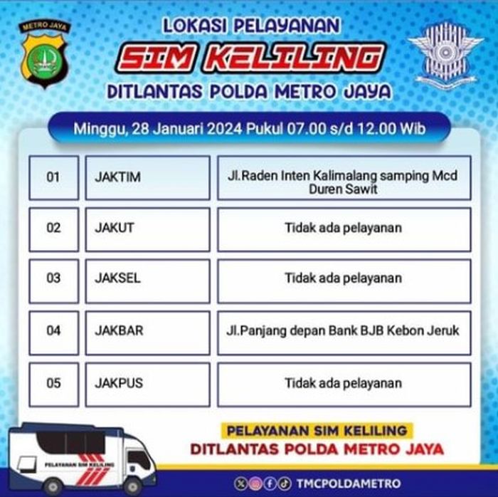 Perlu dicatat juga, SIM keliling hanya untuk perpanjangan SIM C dan A.