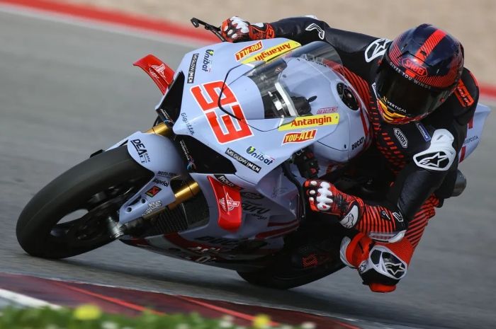 Marc Marquez pakai Ducati Panigale V4 dengan livery Gresini Racing, tim barunya buat MotoGP 2024.