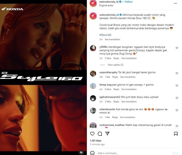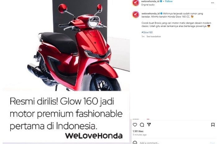 "Akhirnya terjawab sudah rumor yang beredar. MinHo kenalin Honda Glow 160 CC," tulis admin dalam caption postingan.