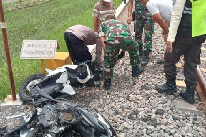 MOTOR Plus-online.com - Kecelakaan lalu lintas melibatkan motor dan kereta api di Kediri, Jawa Timur pada Rabu (7/2/2024).