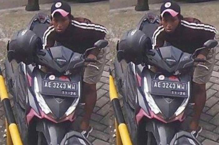 Awalnya ia terpantau berjalan menuju ke area parkir tersebut dan menghampiri motor Honda Vario yang terparkir.