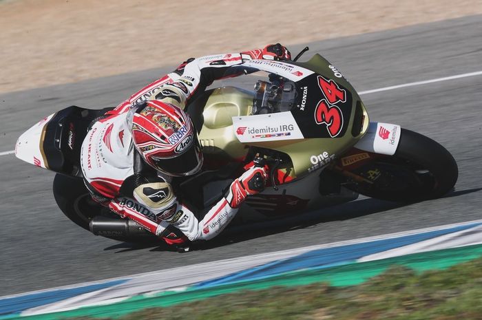 Namun pihak Honda Team Asia sudah mengunggah foto terkini Mario Aji dengan motor Moto2 dan gaya balap yang semakin pas.