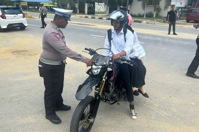 MOTOR Plus-online.com - Pengendara motor tanpa helm di Sulawesi Tenggara terciduk razia polisi.