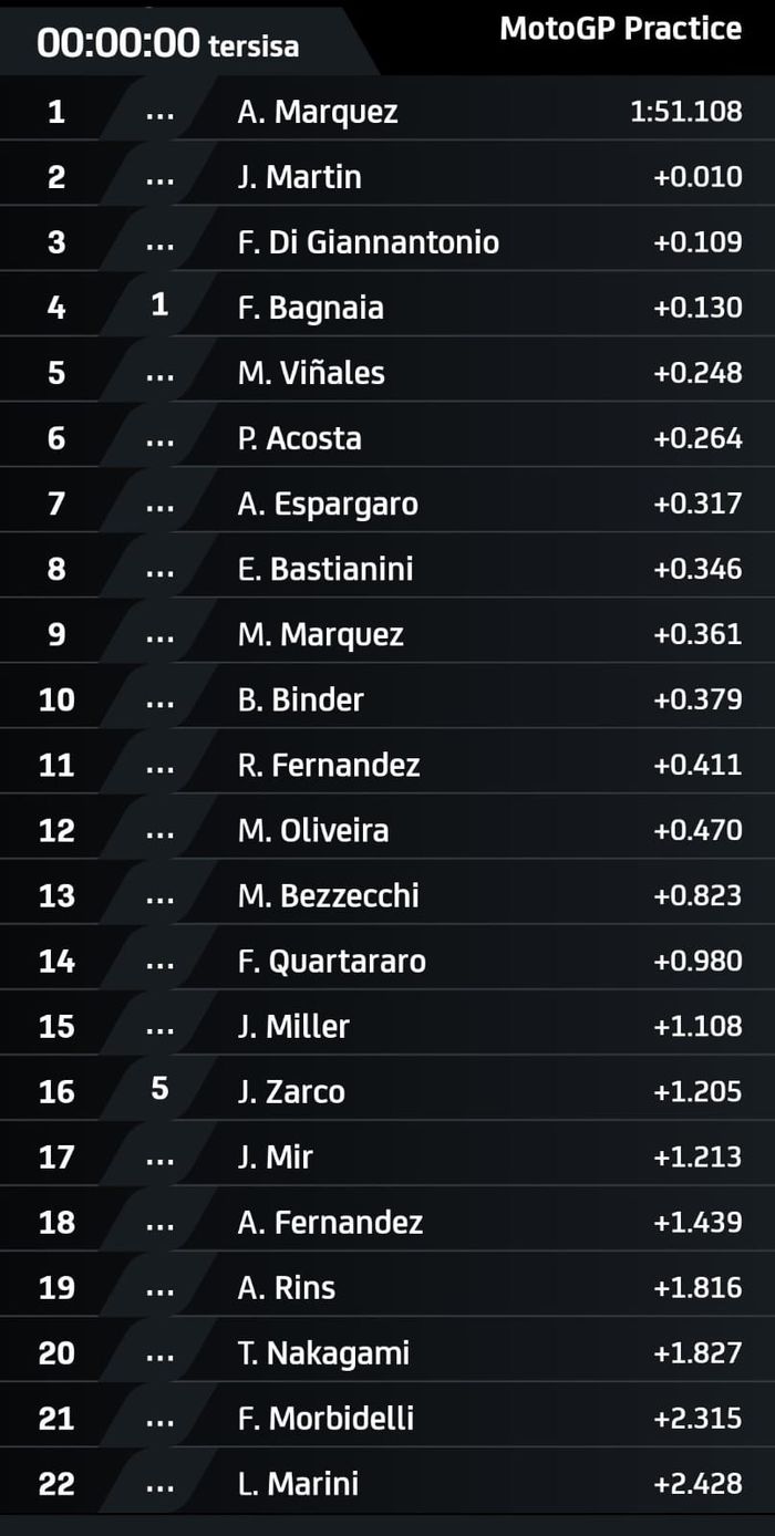 Sementara itu pada posisi enam ada debutan Pedro Acosta yang digadang-gadang siap mengejutkan pada seri pertama MotoGP Qatar.