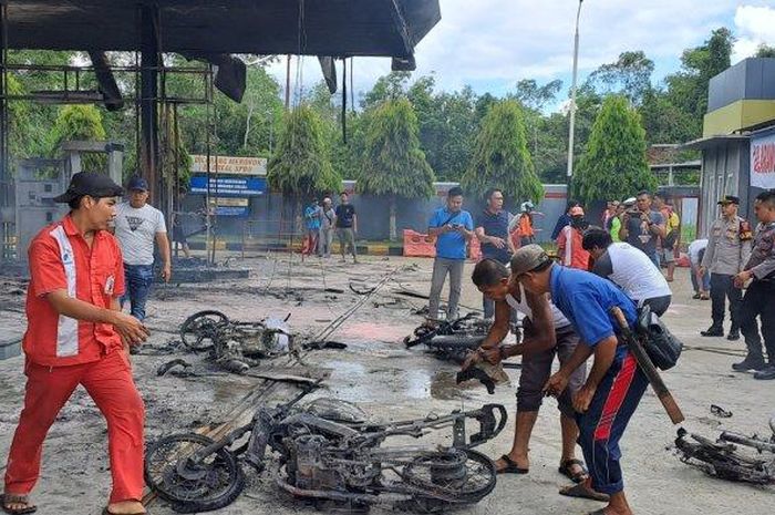 Banyak motor yang tengah mengantri bensin ikut terbakar bersama SPBU.