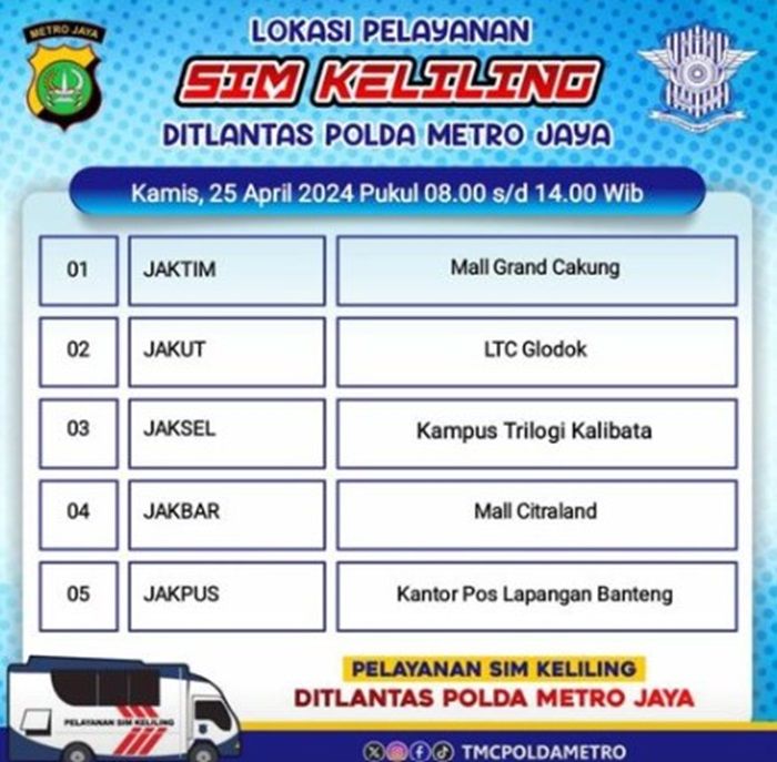 Dan yang ada di Jakarta Pusat, bisa merapat ke Kantor Pos Lapangan Banteng karena ada SIM keliling di sana.