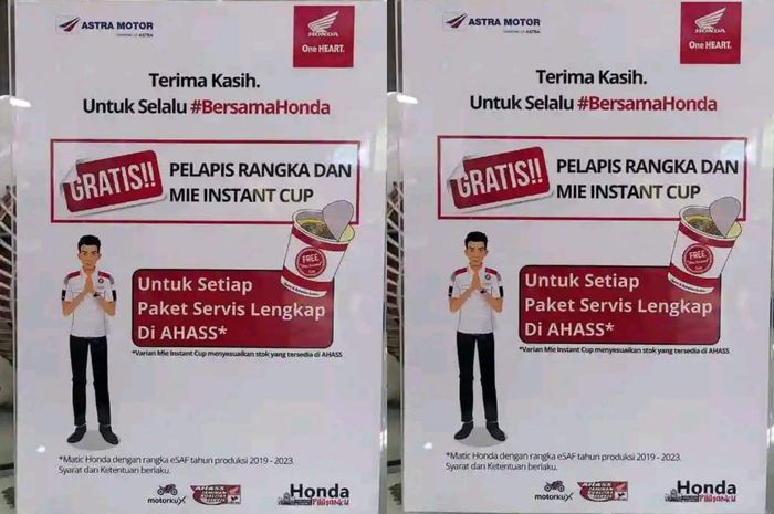 Edaran ini berisikan program AHASS lapis rangka eSAF gratis bonus mie instan cup jika lakukan servis lengkap, namun begini kata Astra Motor.