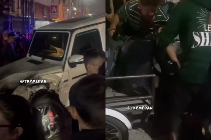Sebuah mobil mewah Mercedes-Benz atau Mercy G-Class terlibat kecelakaan beruntun di Medan.
