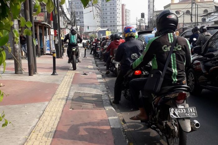 Masih sering ditemukan pemotor yang menorobos jalur pejalan kaki alias trotoar.