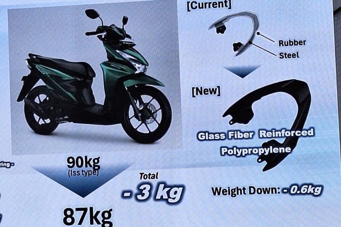 Dengan penggunaan bahan tersebut, behel motor matic Honda terbaru itu diklaim lebih enteng.
