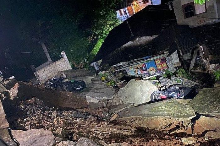 "Mengakibatkan tanah longsor yang berdampak kerusakan pada akses jalan dan halaman rumah di sekitar tempat kejadian (TKP)," katanya lagi.