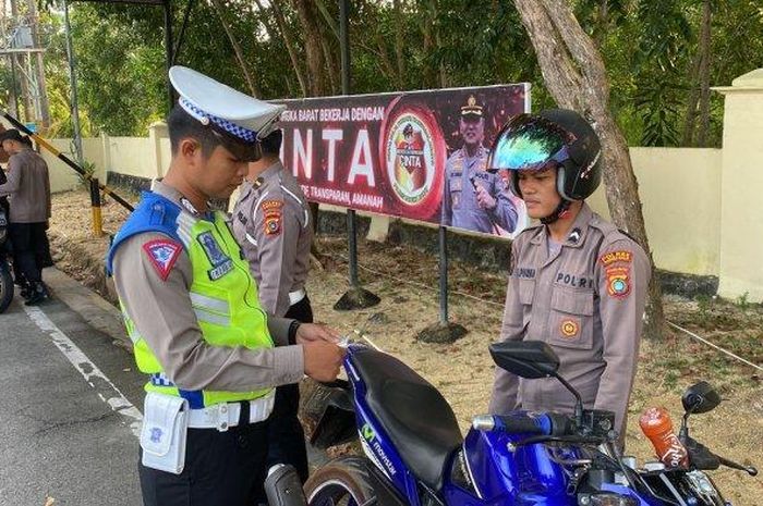 Yang unik Sat Lantas Polres Bangka Barat menggelar Operasi Patuh Menumbing 2024 dengan memeriksa motor milik para anggotanya terlebih dahulu.