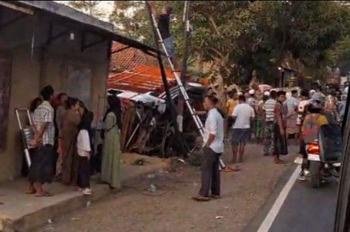 MOTOR Plus-online.com - Warga berhamburan ke luar usai terjadi kecelakaan truk muatan minyak tabrak motor di Bangkalan, Madura.