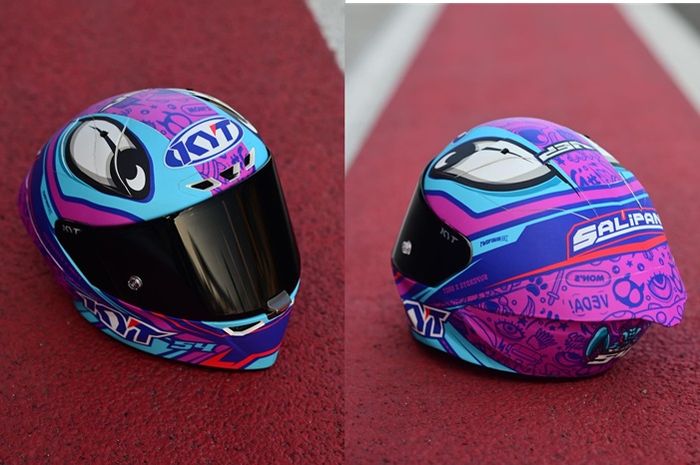 Melalui akun Instagram @veda_54, Veda Ega Pratama memamerkan helm yang dipakai untuk balap ARRC Mandalika.