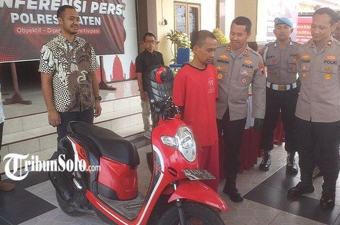 Pria asal Sragen, Jawa Tengah nekat berusaha curi motor Honda Scoopy di Pasar Selogringging, Dukuh Saluan, Desa Pucangmiliran, Kecamatan Tulung, Kabupaten Klaten.