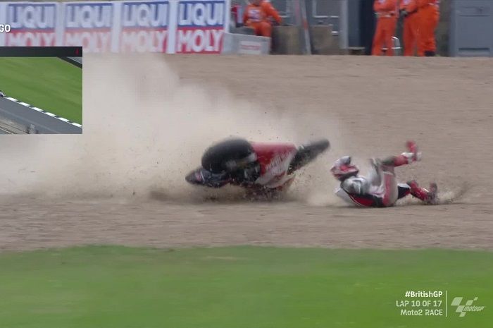MOTOR Plus-online.com - Banyak pembalap jatuh pada balap Moto2 Inggris 2024 di Sirkuit Silverstone, Minggu (4/8/2024).