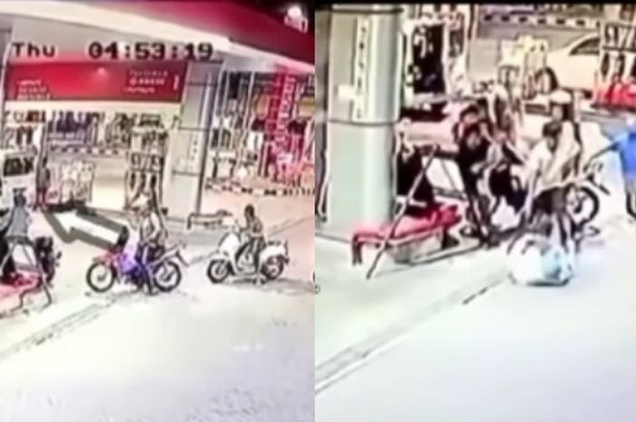 Video detik-detik pemotor dikeroyok penumpang mobil di SPBU Sidoarjo gara-gara puntung rokok.