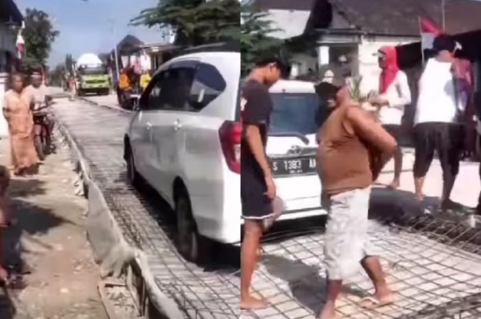MOTOR Plus-online.com - Kasus kendaraan nekat menerobos jalan baru dicor sampai hancur sudah beberapa kali terjadi.