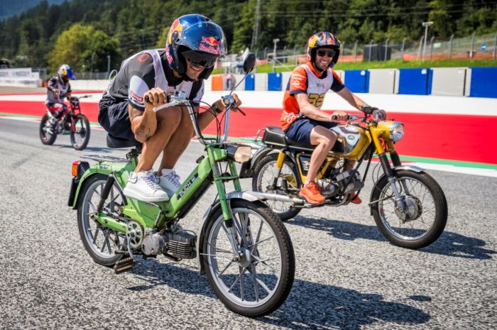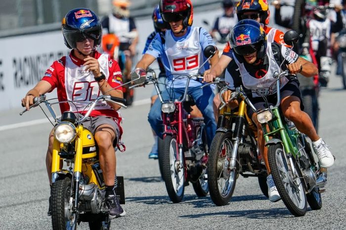 Misalnya Brad Binder, yang riding naik KTM Comet GT50, moped era 60an.
